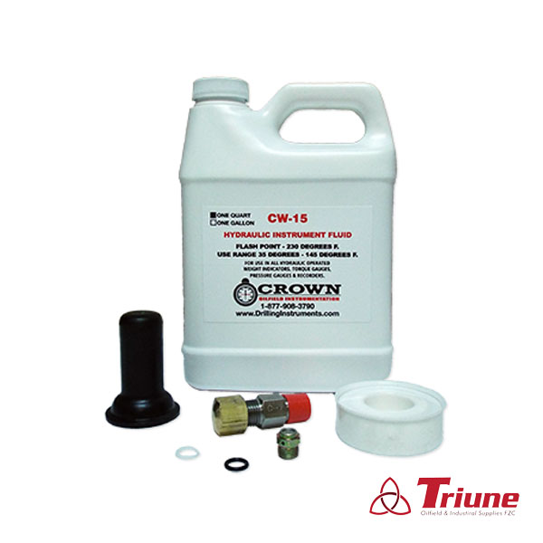Quart-sized red instrument fluid cw15 used with all Crown hydraulic systems. Fluid is designed for rig equipment operating under hydraulic pressure . Provides protection against wear, rust and corrosion ensuring long equipment life. Crown red instrument fluid, when used in our weight indicator systems and pump pressure systems, transmit changes in pressure to gauges. Our red instrument fluid CW15 stands up to the harshest industry conditions and works in the most extreme temperature.